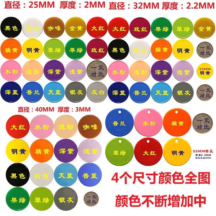 35MM multicolor with holes environmentally friendly material Highlight burr-free customizable learning coin chip coin number plate platoon number