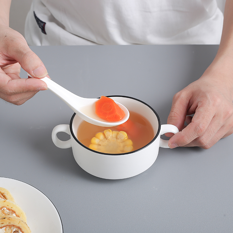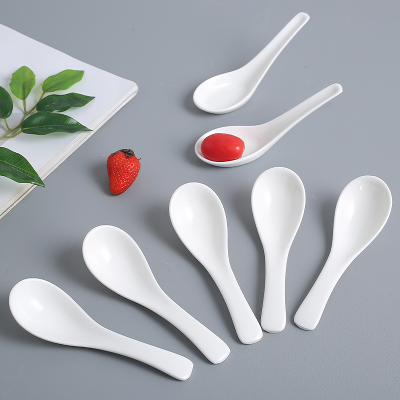 10 non-porous porcelain spoons (the tail of the spoon handle is unglazed) 10 round porcelain spoons without holes (the tail of the spoon handle is unglazed)
