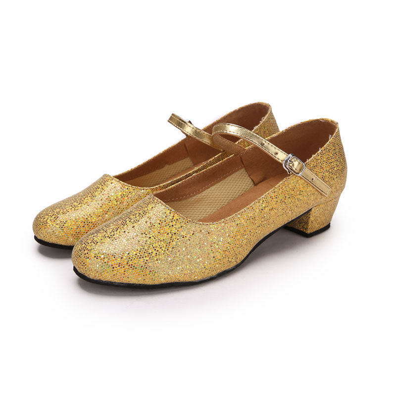Children Latin dance shoes female style flat heel dance shoes toddlers soft-bottom sequins dancing shoes girls low heel training school