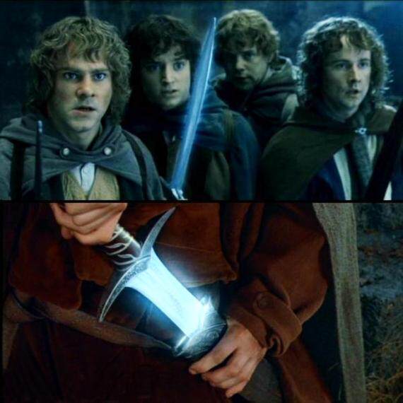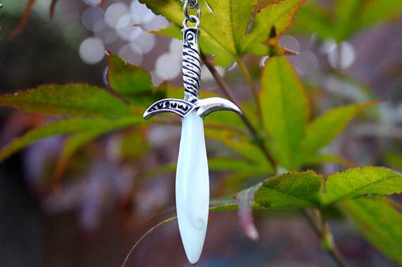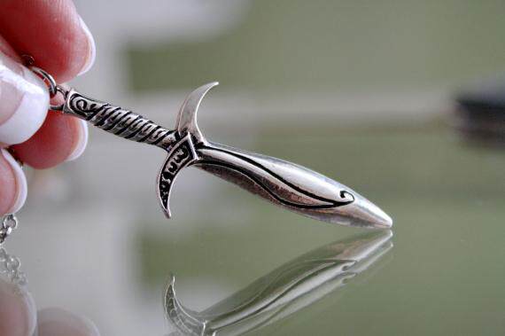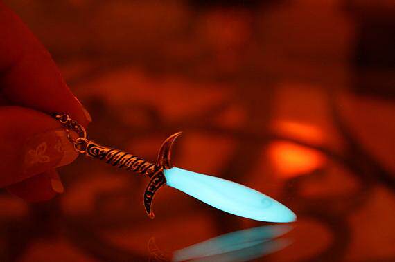 Sword The Canadian hand for a retro sword-shaped magical beautiful blue green luminous pendant necklace