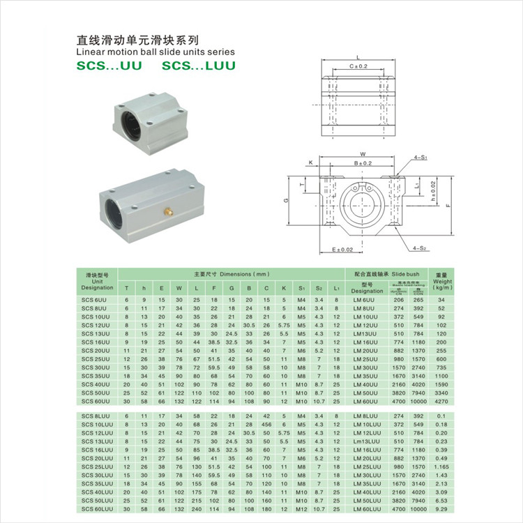 SC8LUU Inner diameter 8mmSC10LUU Inner diameter 10mmSC12LUU Inner diameter 12mmSC16LUU Inner diameter 16mmSC2