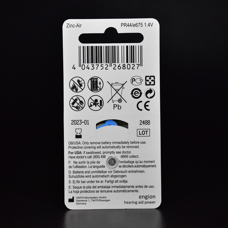 German import engine engion hearing aid battery e675 peak force hearing aid zinc empty battery cochlear battery