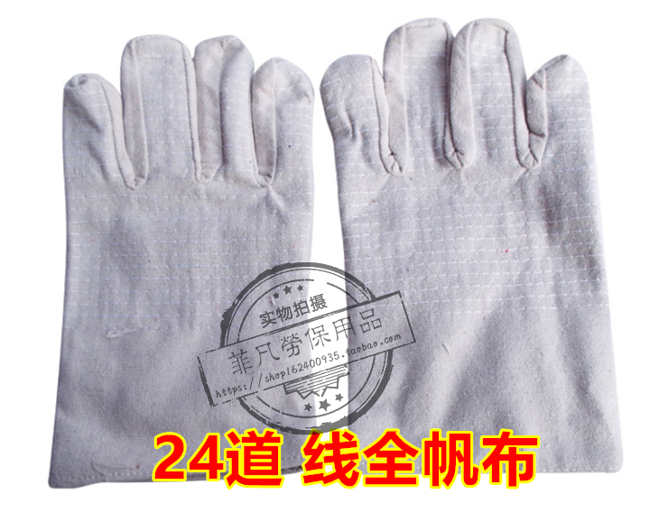 Double-layer full canvas gloves labor protection gloves wear-resistant and thickened 24 cotton yarn gloves industrial work protection gloves