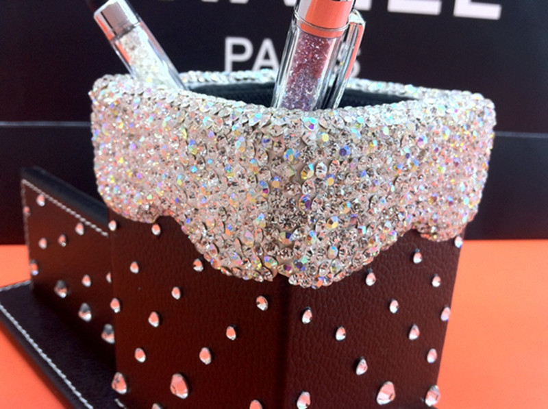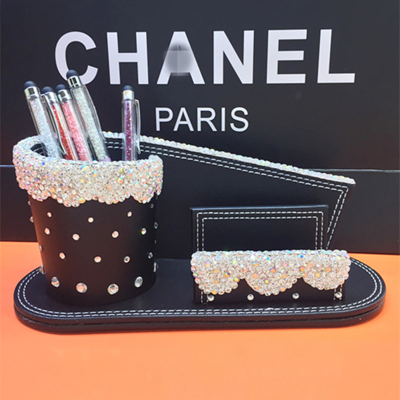 Creative Fashion Water Drill Office Supplies Pen Holder Business Card Seat Upscale Luxury Inlaid Drilling Personality Pen Holder New