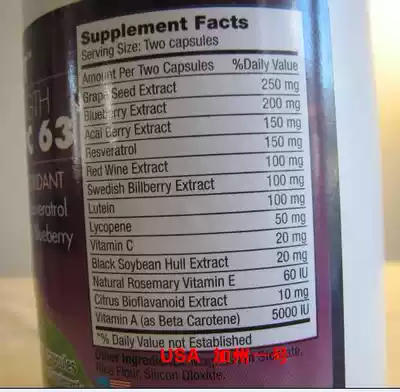 Grape Seed Extract (Grape Seed Extract) 250mg Billberry Extract (wild berry Extract)