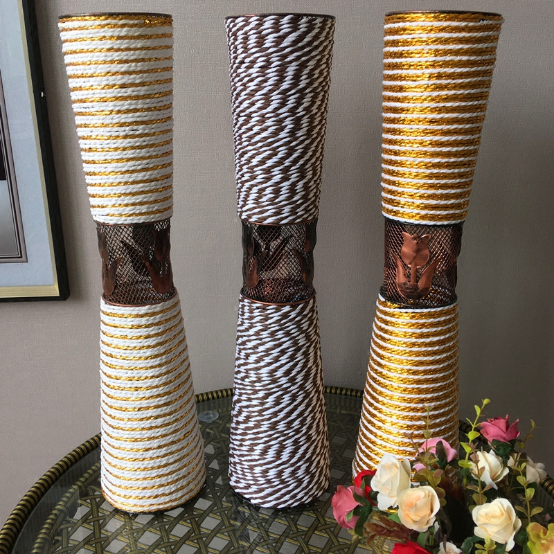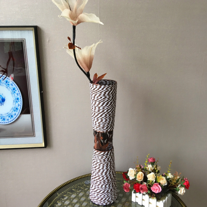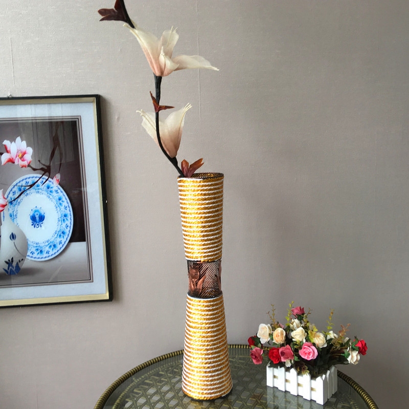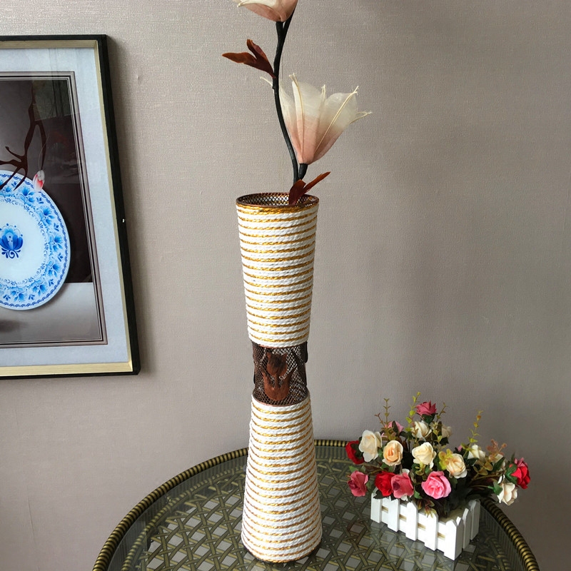 Rattan wrought iron floor vase thin waist large flower basket 55cm high European decoration living room floor flower arrangement flower arrangement