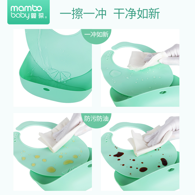 Manbao baby eating bib silicone ultra-soft waterproof anti-dirty removable portable baby kids food food saliva pocket