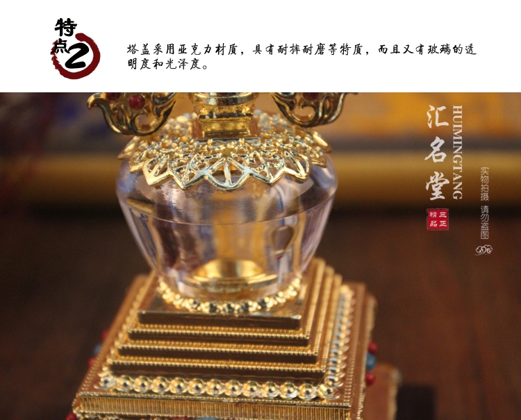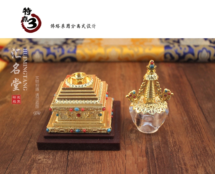 Crystal stupa Bodhi Stupa 6 inches Fine gold plating Exquisite workmanship