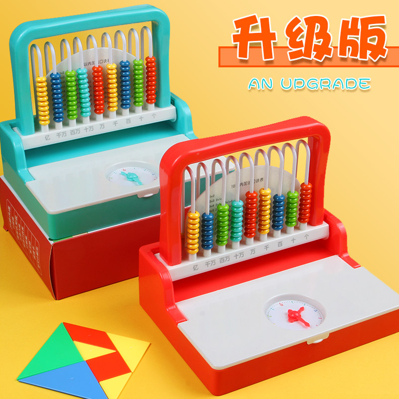 Morning Optical Box Primary students First grade nine lines Two-in-one Men and women Multi-functional intellect Mathematical Stick Teaching Aids Pearl Mind Counting Small Abacus Counter 7 Smart Board Sophomore Clock Point Learning