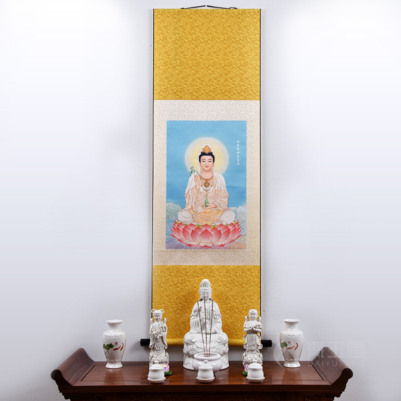 Dai Yutang silk cloth hanging painting Guanyin painting Guanyin Bodhisattva statue portrait scroll decoration wall hanging painting canvas