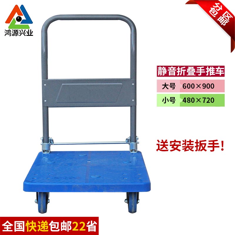 Hongyuan Plus Height Folding Trolley Flat Cart Pull Trolley Cart Trolley Silent Flat Trolley Porter