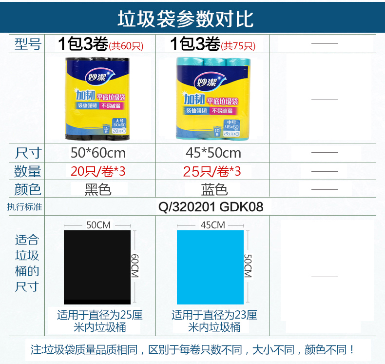 Miaojie point broken garbage bag flat flat flat large medium kitchen household disposable garbage bag 3 rolls