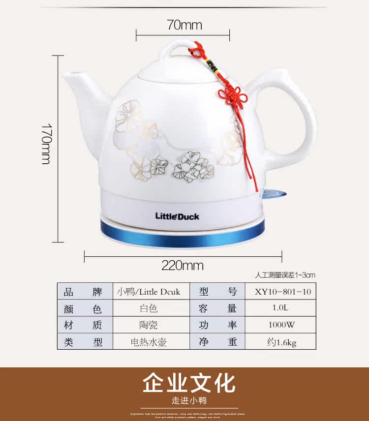 Little Duck Small Duck Ceramic Electric Kettle Boiling Kettle Open Kettle 304 Home Insulated Tea Porcelain Pot 1L