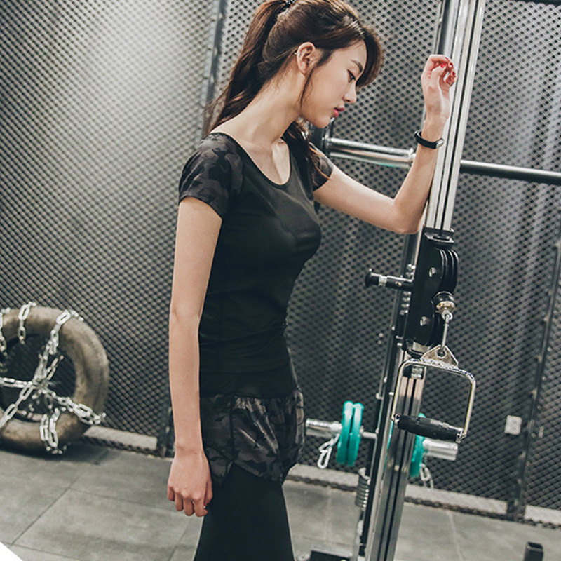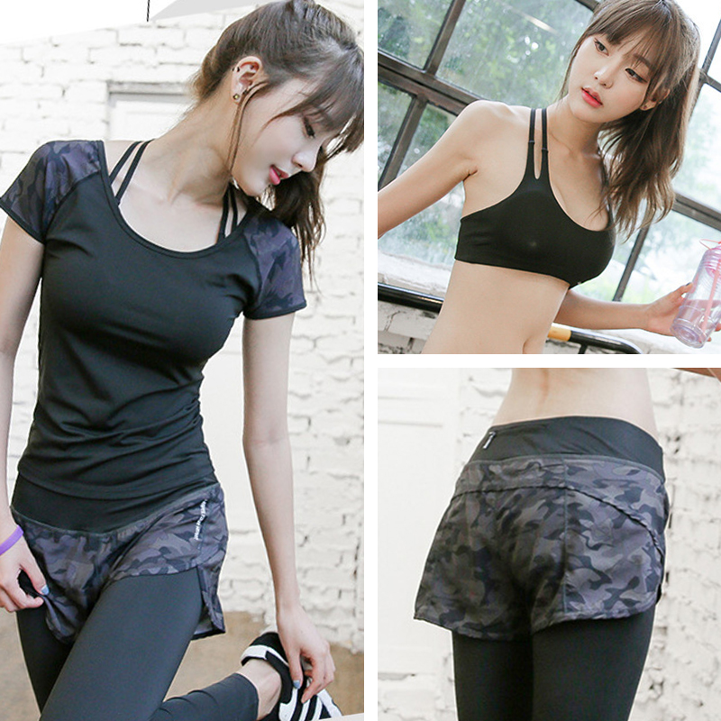 Gym yoga clothes sports suit women's running clothes three-piece suit summer thin quick-drying short-sleeved fake two-piece trousers