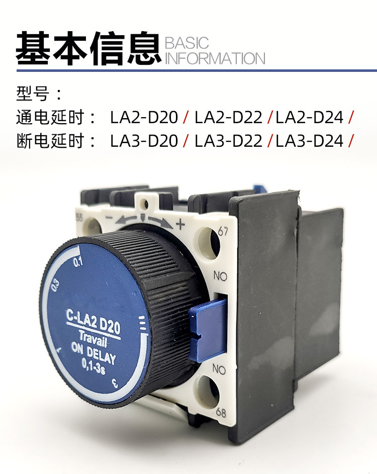 Contactor delay relay contact LA2 D20 D22 D24 A65 on-off delay air delay head