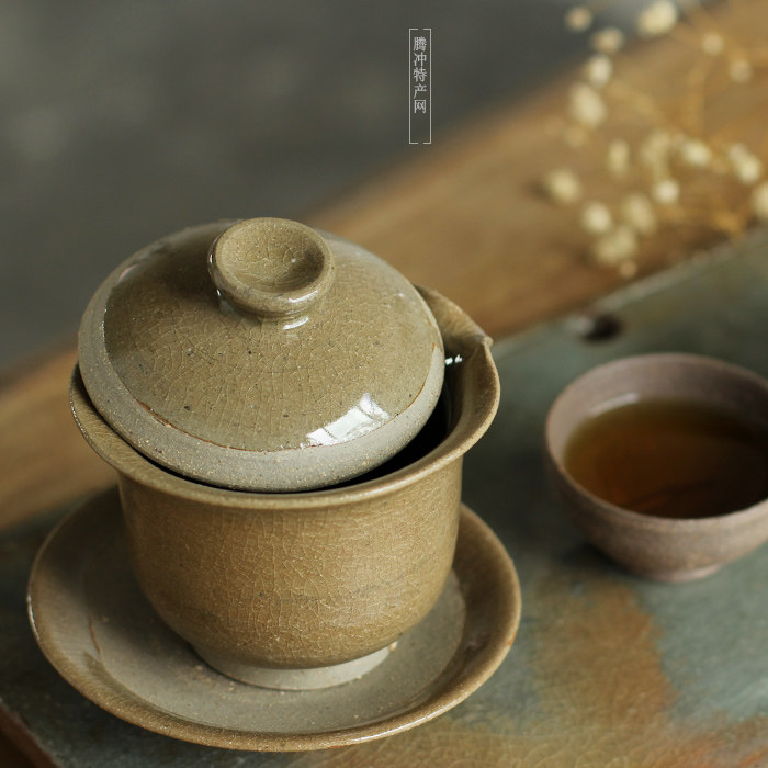 Cloud life aesthetics Idle cloud clay pottery dragon kiln volcanic clay pottery handmade stoneware cover bowl tea bowl kung fu tea set