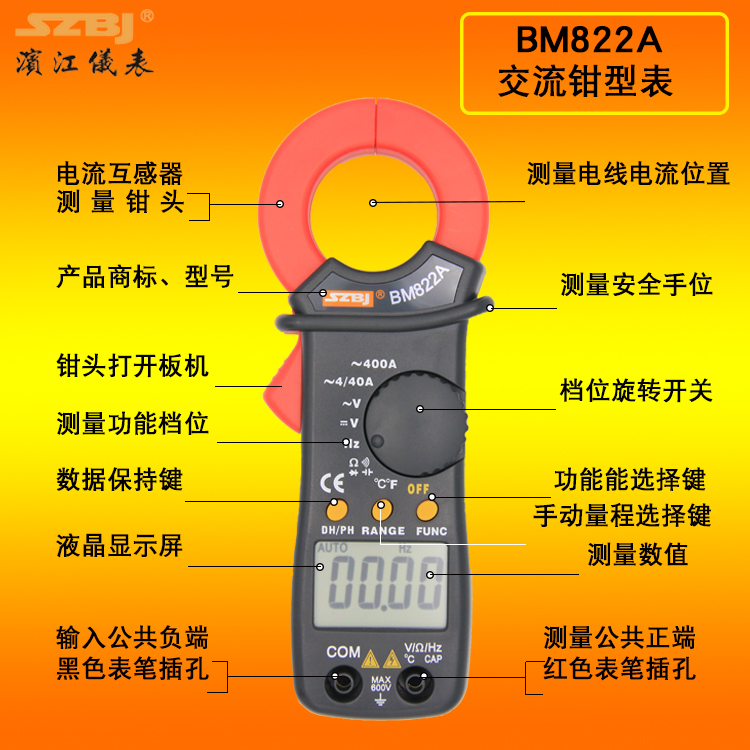 Hamjiang BM822A small multifunctional 400A capacitive frequency temperature multifunctional anti-burn digital pliers type universal electric meter