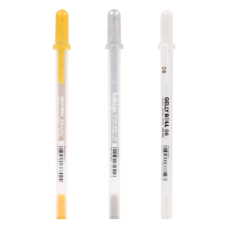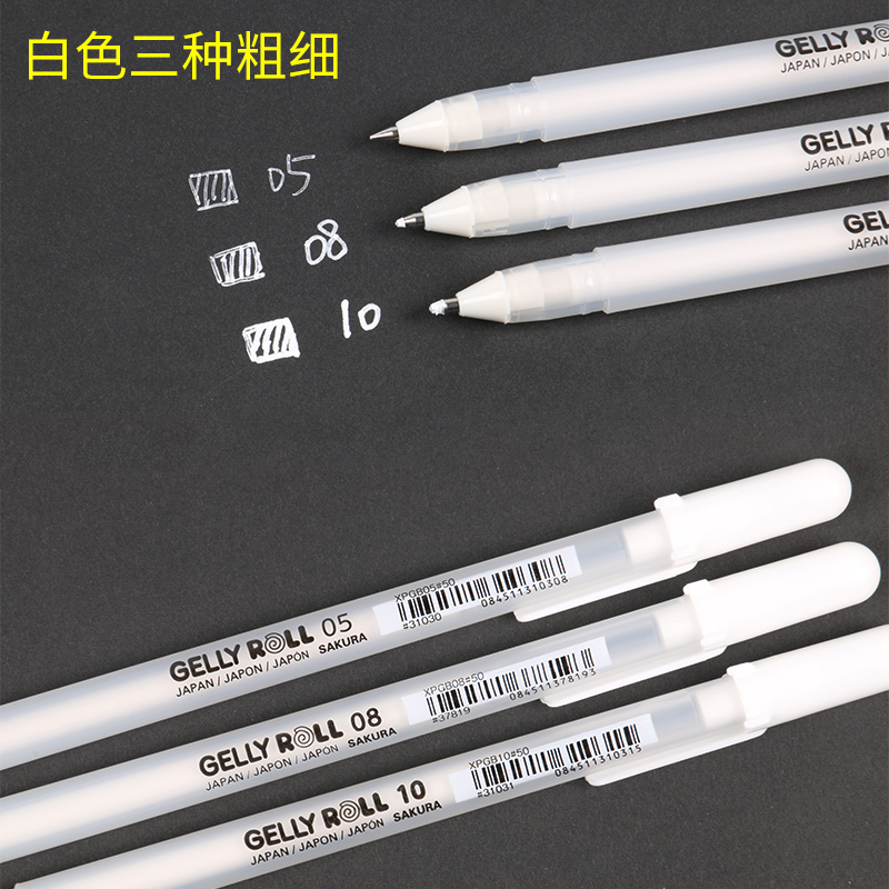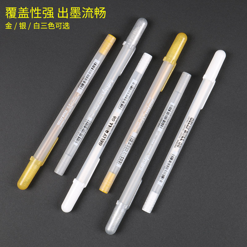 Japan Cherry blossom high-gloss pen set Student hand-painted high-gloss white pen Art supplies Gold silver white refill black bottom write white fine head watercolor leave white hook line pen High-gloss painting pen