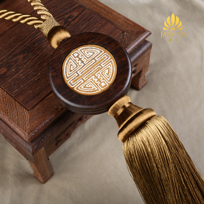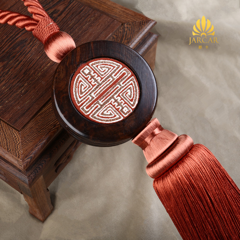 New Chinese embroidery ebony solid wood large hanging ball Zen tie luxury boutique curtain tie rope long tassel hanging spike