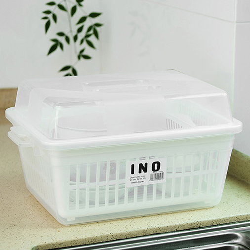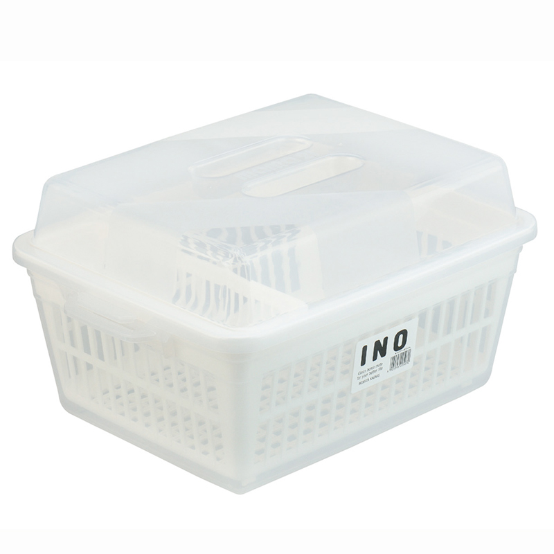 Japan imports inomata kitchen plastic bowl frame large cover asphalt basket dish with double layer