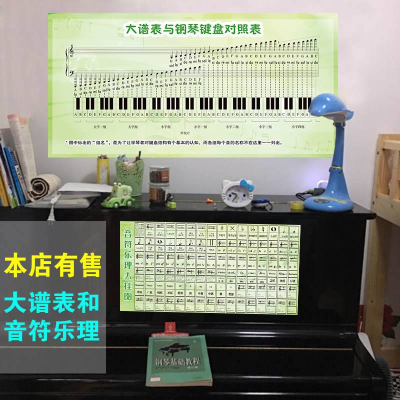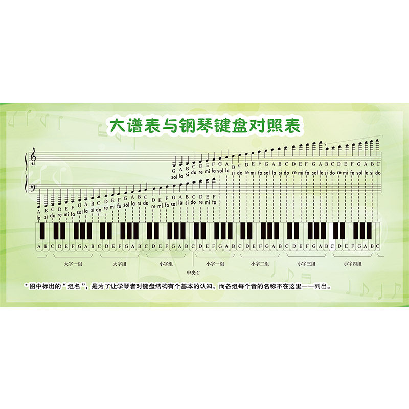 Large score table and piano keyboard comparison table note music theory table simulation 1