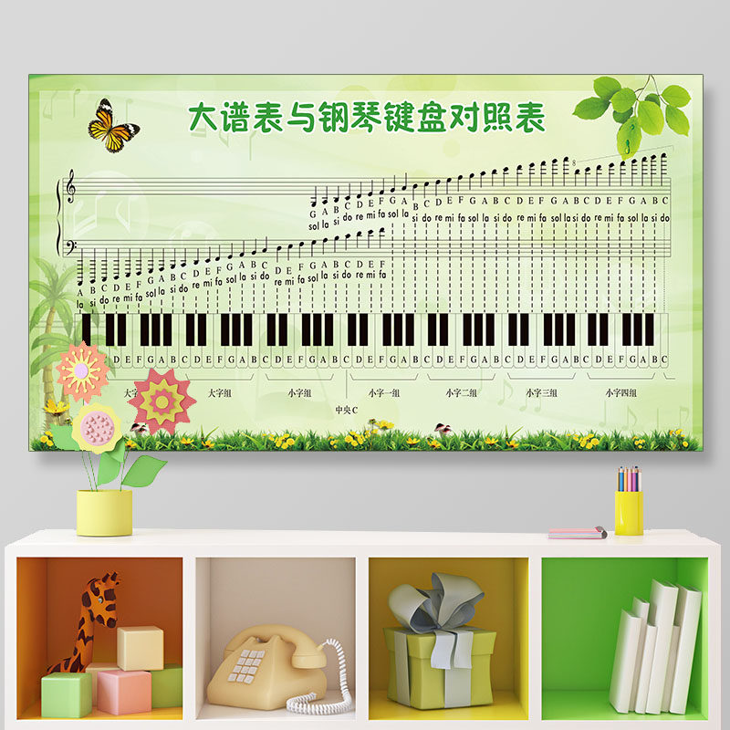 Notes Wall Sticker Music Classroom Decoration Music Theory Piano Room WallCharacter Music Poster Sheet with Piano Keyboard Photo Table