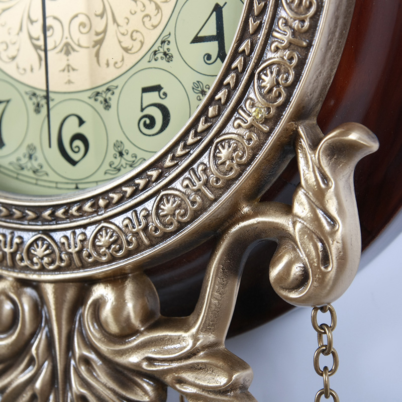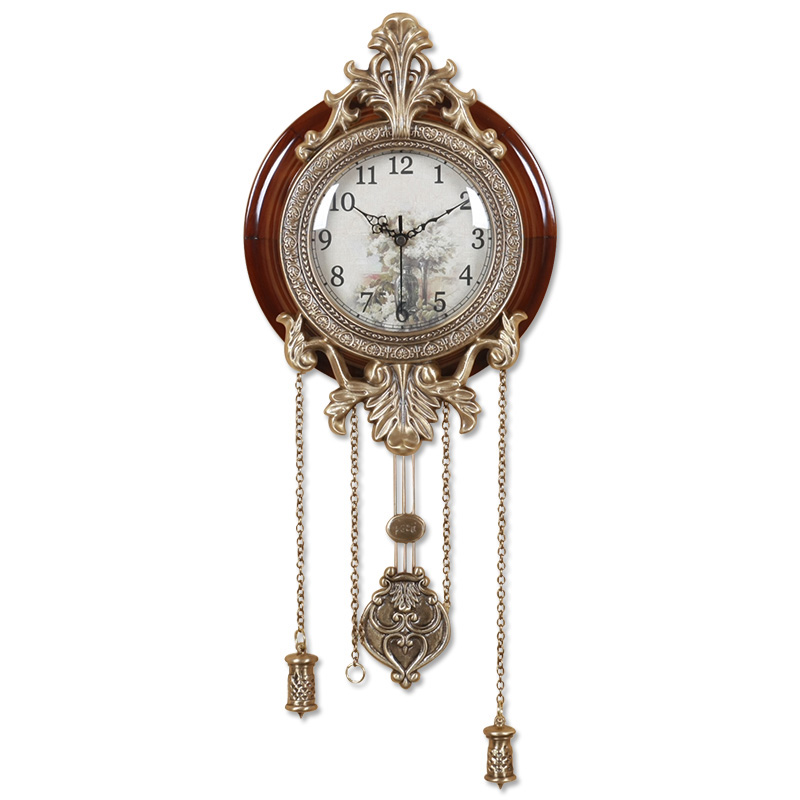 TQJ hung clock Eurostyle bedroom clock pure copper solid wood living room single face hanging watch mute pendulum clock fashion watches