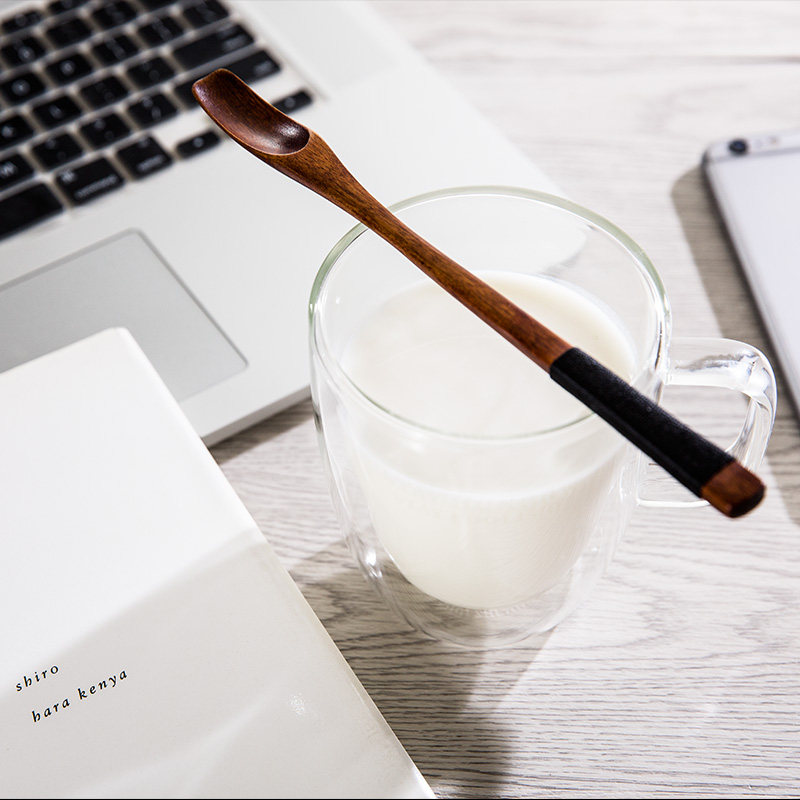 Day Style Cutlery Brown Nanwood Tangle Wire Long Handle Spoon Coffee Stir Spoon Wood Made Tea Soup Spoon Wooden Ice Cream Spoon