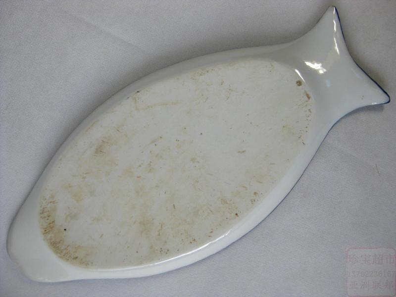 In the 1950s, the blue and white porcelain fish plate of Dezhen kiln was 38cm long, the tribute fruit plate, the tea set, the bowl, the pot, the cup mat, the appreciation plate