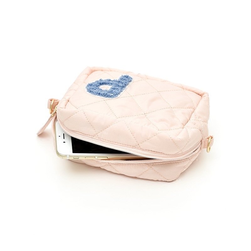 Pink blue blue with letters embroidered light pink small square bag