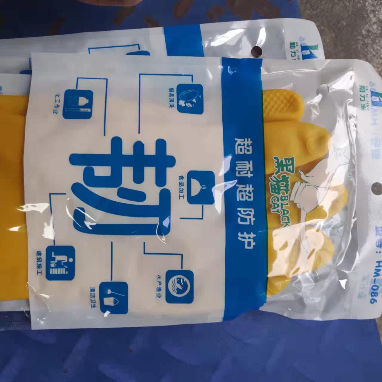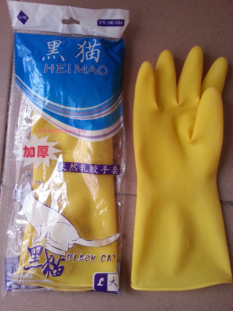 Black Cat Signs Yellow Thickened Bull Fascia Gloves Resistant Acid latex Industrial thin housework Durable Rubber Gloves