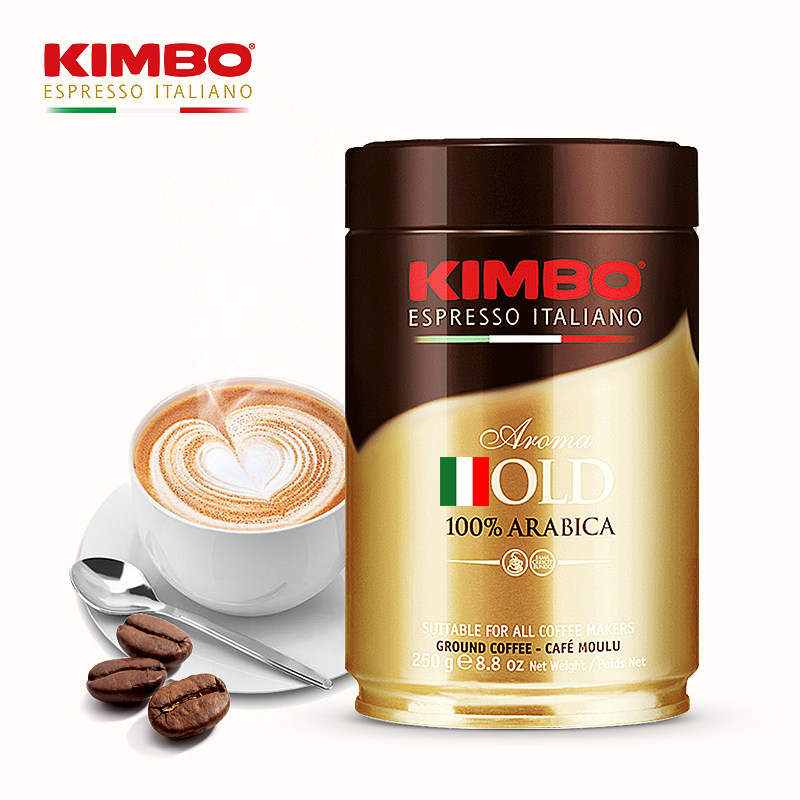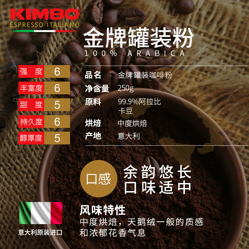 KIMBO Italy imported freshly ground hand-brewed pure coffee powder Italian fragrant black coffee canned 250g non-instant