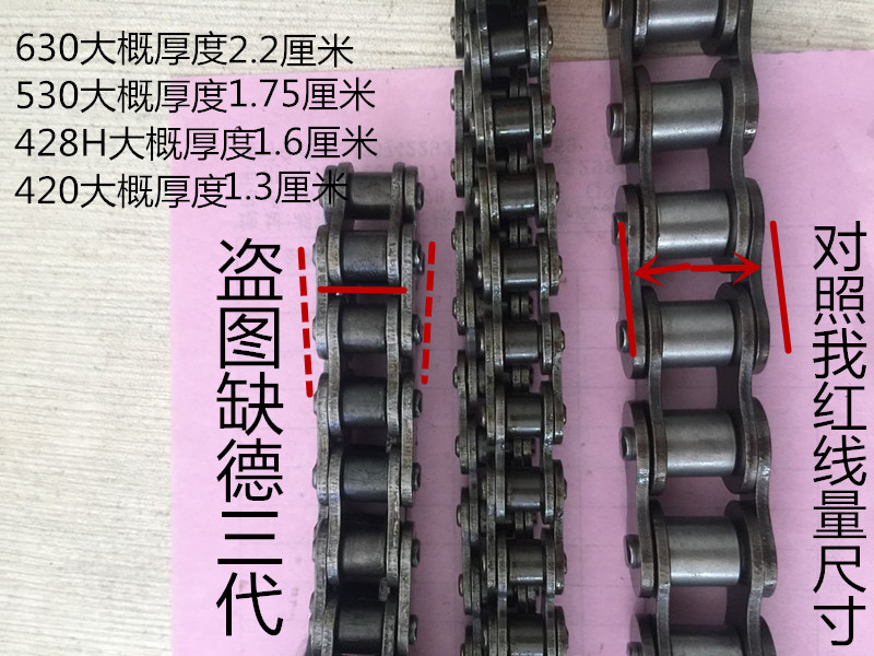 Motorcycle chain 420 428H 520 530 630 type 112 118 extended industrial section thickened chain