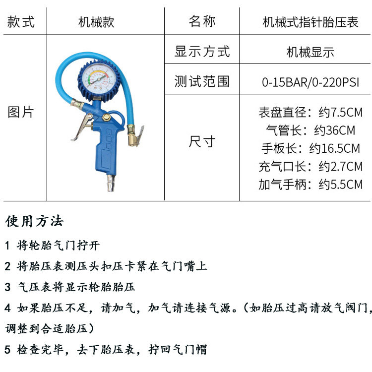 Auto maintenance tools Tire pressure gun Inflator nozzle Pressure gauge Tire pressure test Inflator nozzle Pressure gun