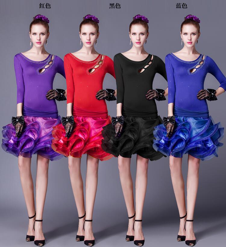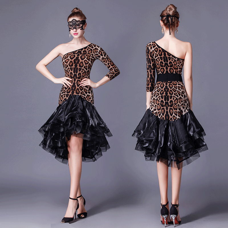 Lan Kwai Fong Latin dance performance clothing women's custom denim one-shoulder long-sleeved competition clothing waltz dress new