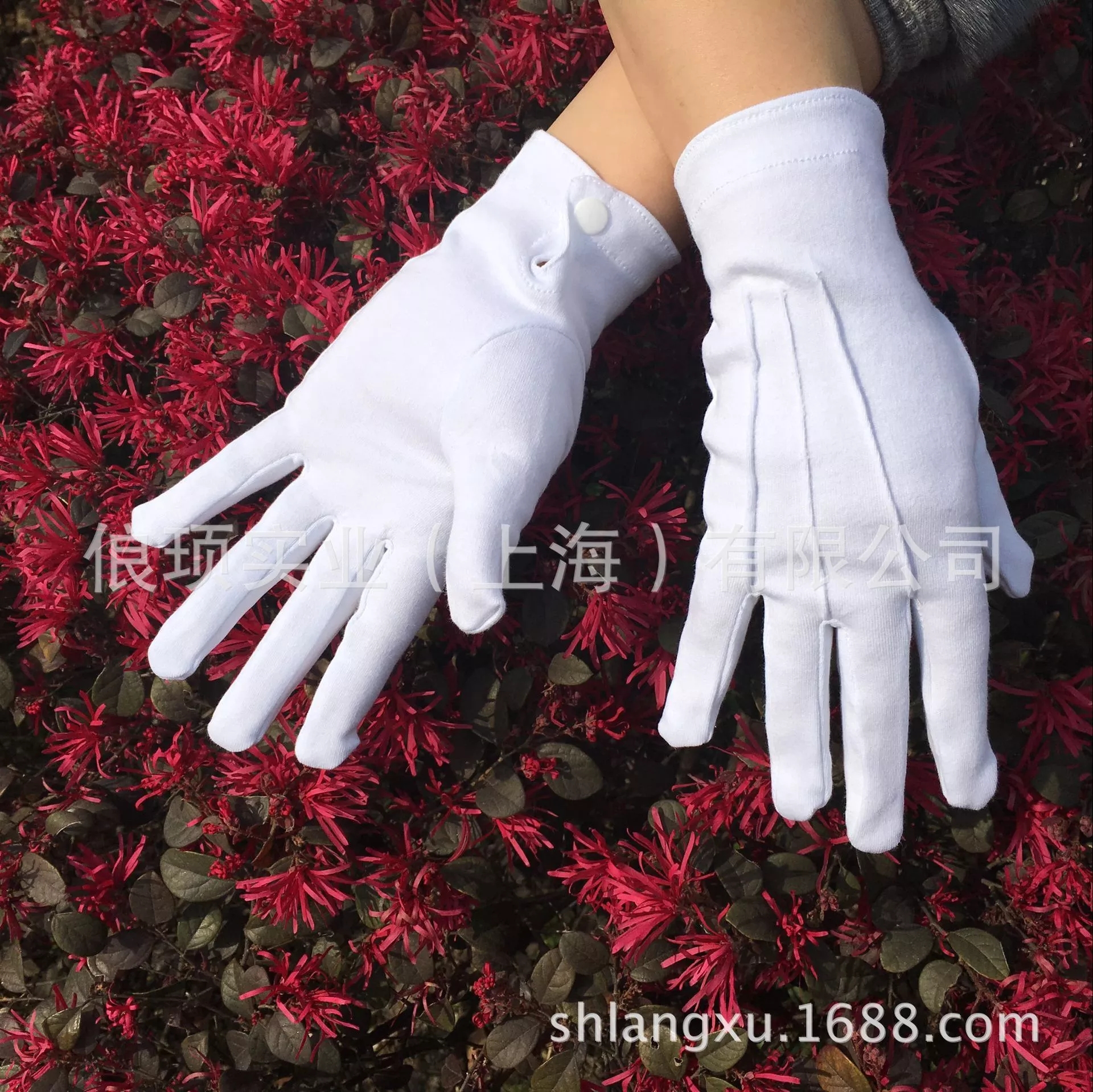 High-end Outlet Fine Cotton Fine Yarn Cotton White Gift Instrument Three Ribs With Buckle Gloves Parade Performance Gloves Protocol Gloves