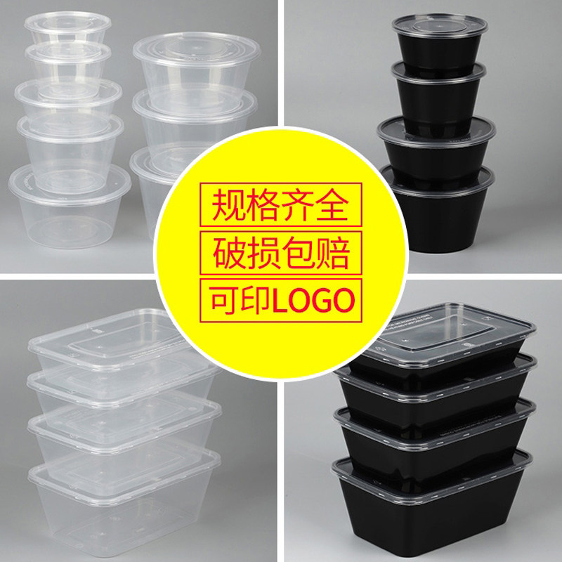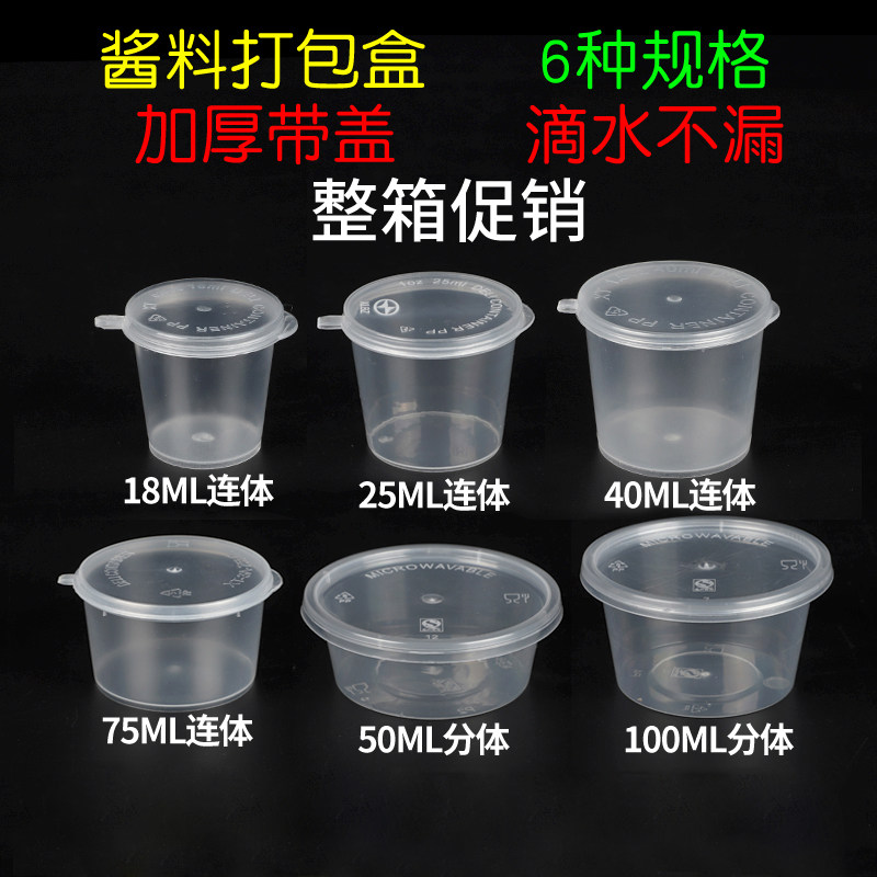 Qidian disposable seasoning box round plastic bowl disposable lunch box delivery packaging box with lid transparent fast food box