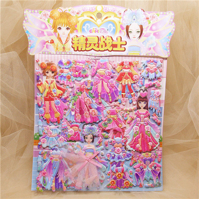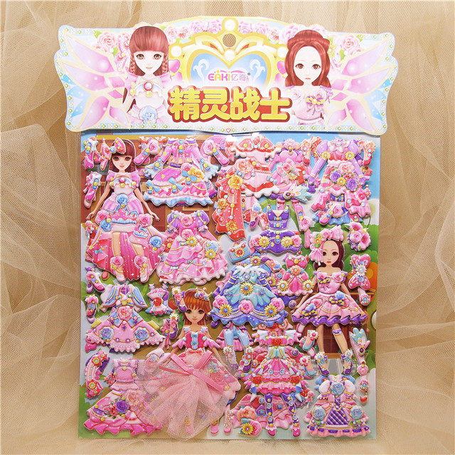 Yiqi double-layer large children's princess dress up Ye Luoli fairy three-dimensional gauze skirt foam sticker batch
