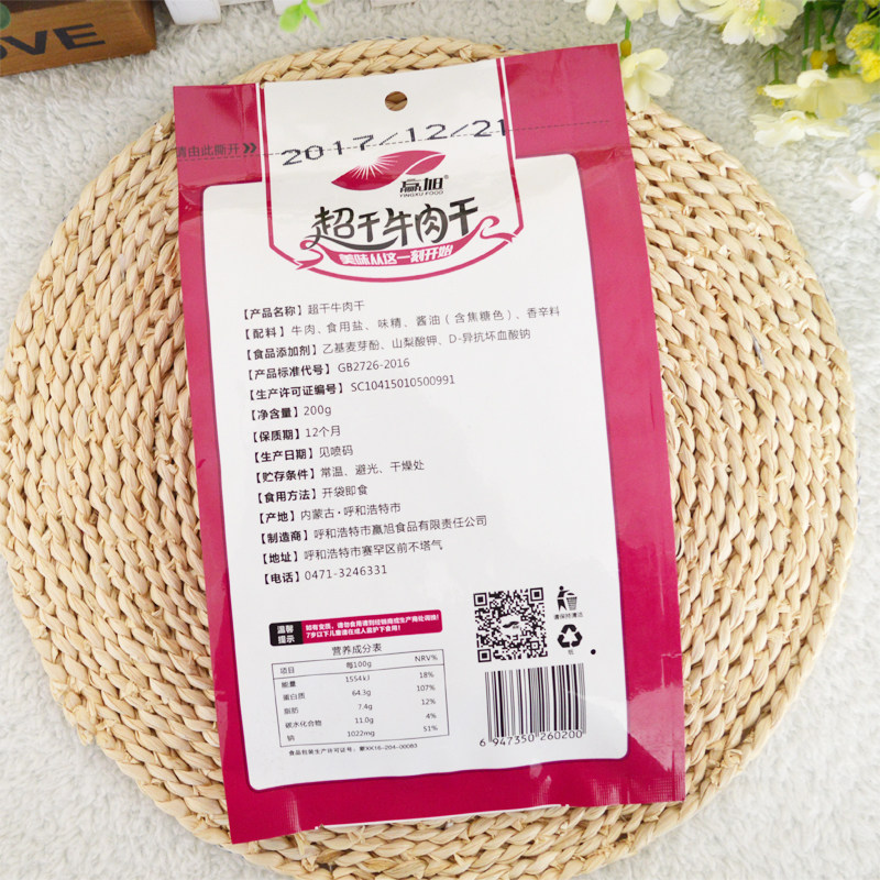 Beef Dry Win Xu Zhengzong Super Dry Air Dried Beef Inner Mongolia Termine Fire baked Tgan dry strips 200g