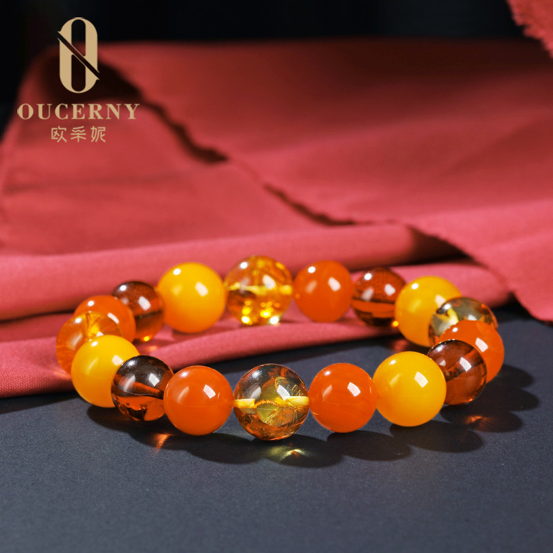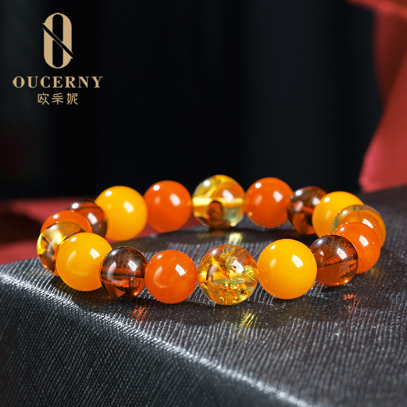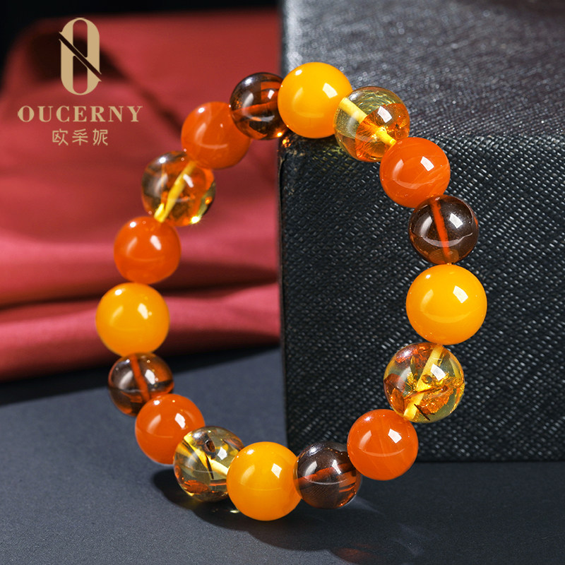 Eugenie Beeswax hand string natural round beads bracelet Amber multi-treasure Buddha beads Flower Pernan Red Agate blood Perm men and women