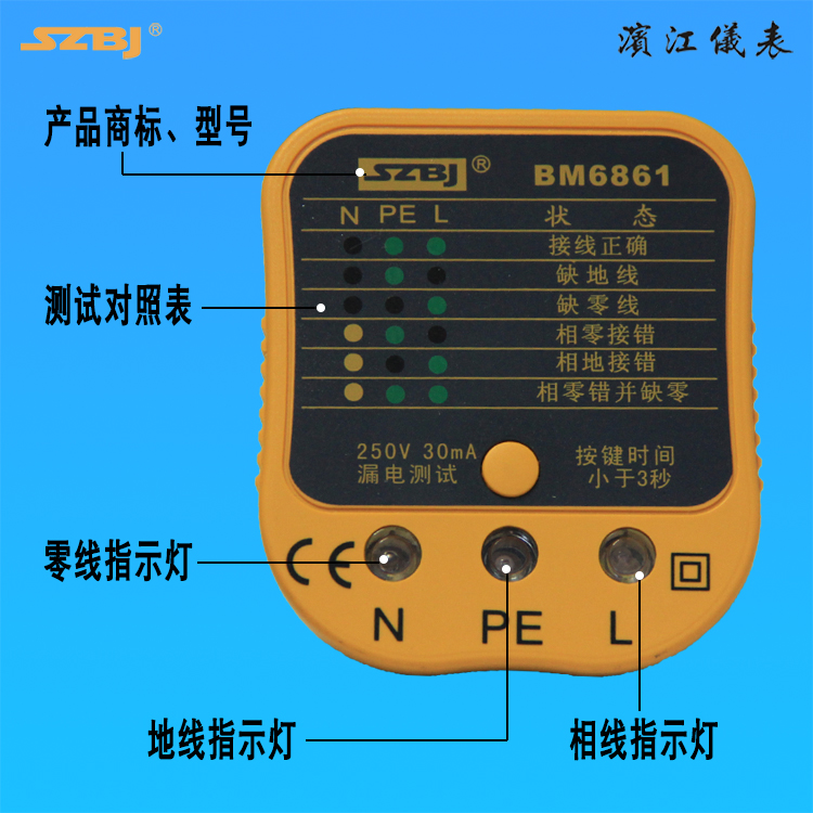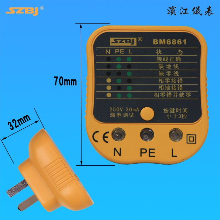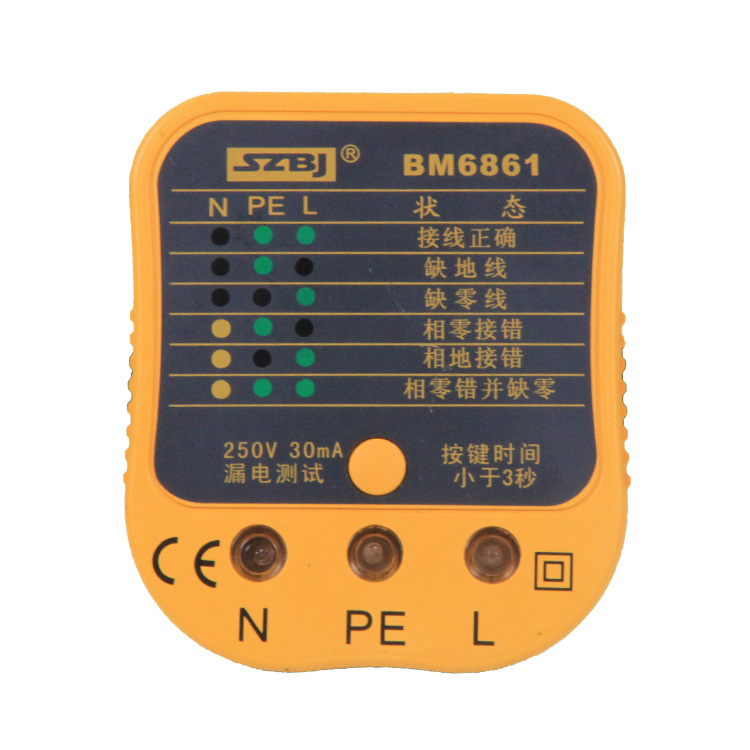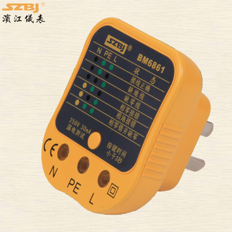 SZBJ Binjiang BM6861 detection circuit fire wire ground wire zero wire wiring right or wrong socket tester