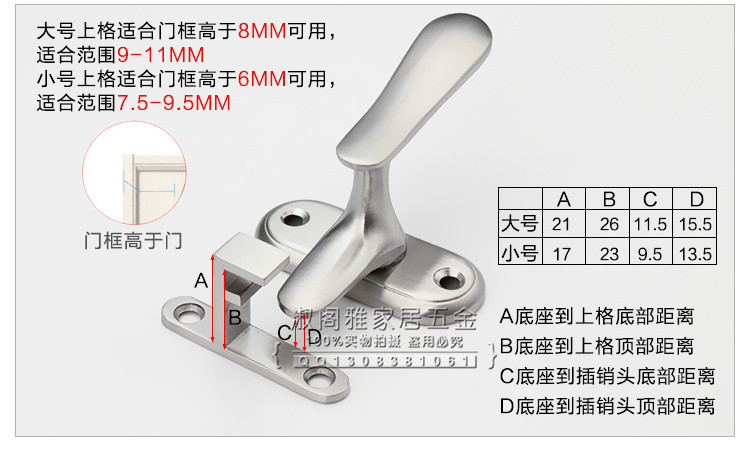 Fine Foundry 304 Stainless Steel Bolt Concealed security Anti-theft door pin upmarket door bolt wood door Ming fitting door buttoning lock