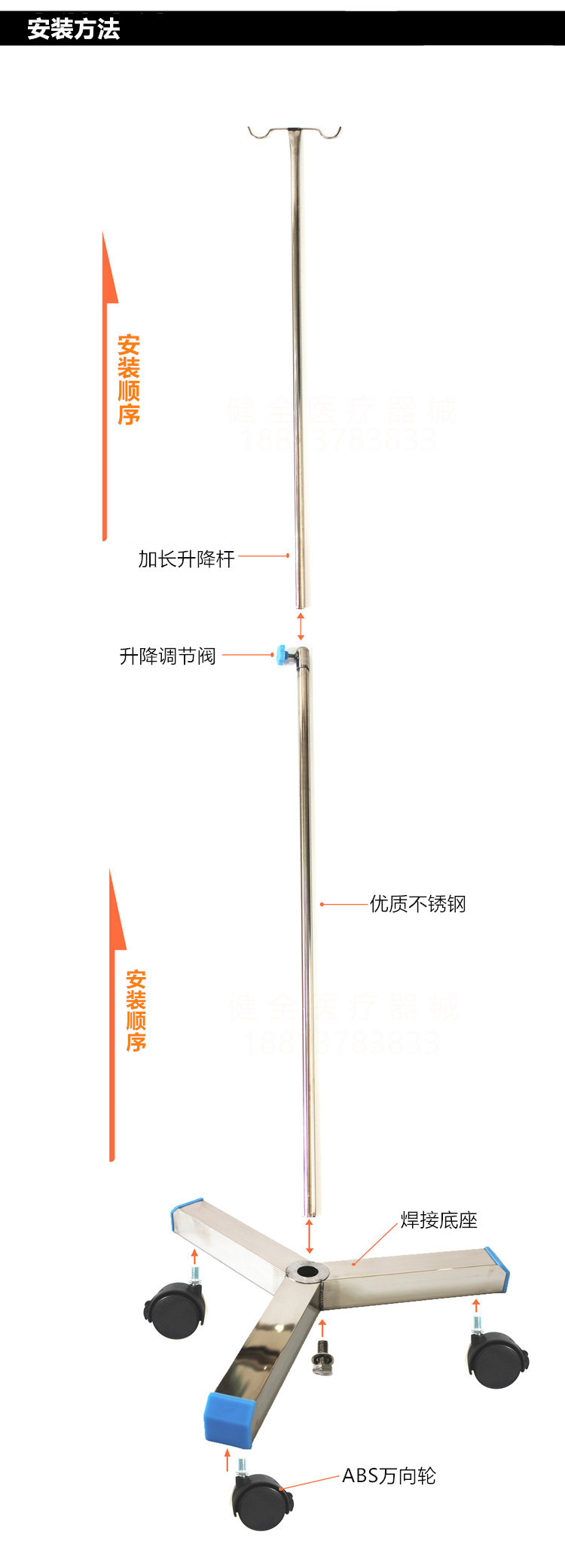 Stainless steel infusion stand Mobile hanging bottle rack High and low adjustable node drip rack with wheel