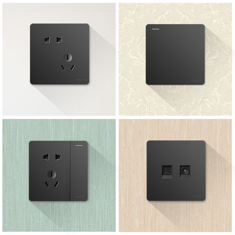 Delixi with switch socket gray 86 panel household wall concealed open five-hole power supply porous black