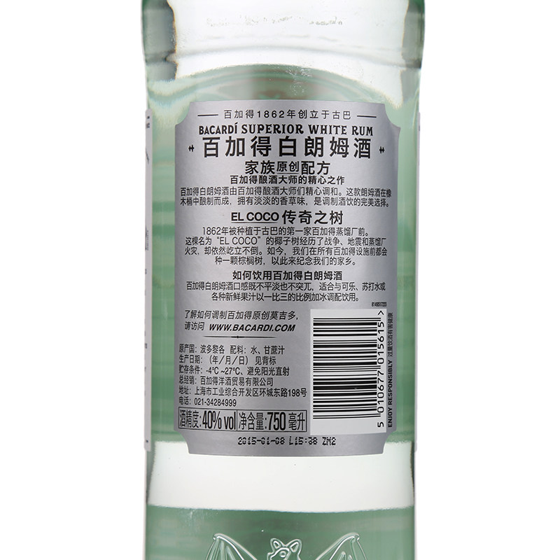 Bacardi White Rum Bacardi Bacardi Rum 750ml Baking licensed