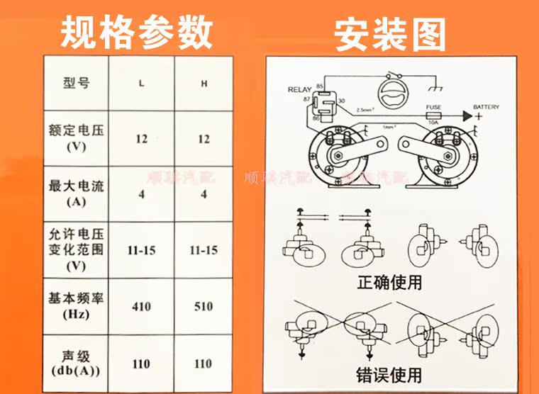 12V (with 4 horn lines) 12V (with horn line + relay seat) 24V (with 4 horn lines) 24V (with horn line + relay seat) One battery for the car with 12V with two batteries for the car 24V