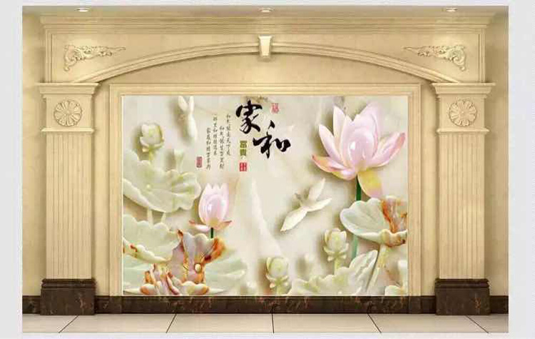 Living room All-over marble Roman column Living room background wall border marble overall custom European background wall
