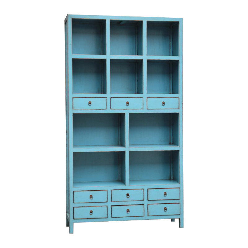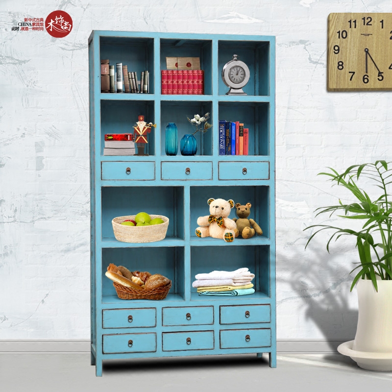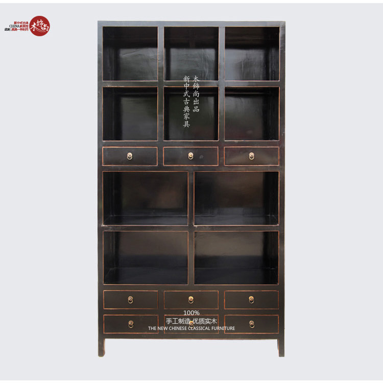 New Chinese Old Pine Wood Classical Book Room Bookshelf Filing Cabinet Rack Retro Made of Old Decorative Exhibition Hall Rack Cabinet Solid Wood Furniture