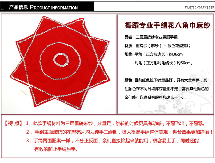 Thickened grade examination skills hemp gauze Northeast Yangko dance handkerchief octagonal towel square dance two people turn square towel handkerchief