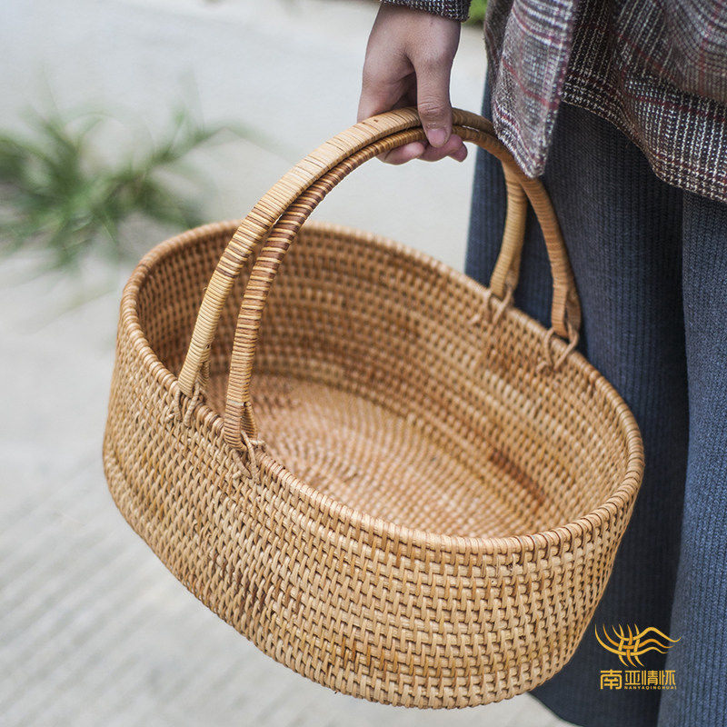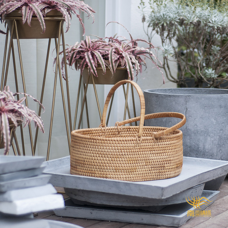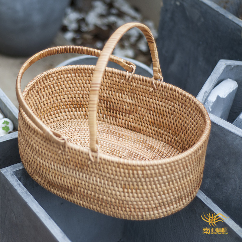 Vietnamese Rattan Fruit Basket Vegetable Basket Shopping Basket Bread Basket Candy Storage Basket Picnic Basket Flower Basket Nordic Creative